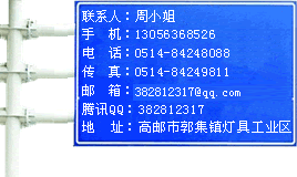 | 地址:揚州市北郊郭集鎮燈具工業區 聯系人:周小姐 手機:13056368526 18921926488 蘇ICP備15031957號 蘇公網安備32108402000913號 | |
